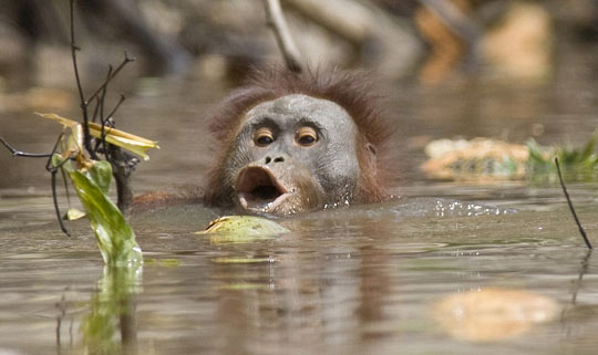 英国媒体6月8日公布了一组罕见的大猩猩在水中游泳寻觅食物的照片。
