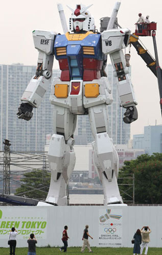 6月9日,一个高达18米的巨型卡通人物模型“机动战士高达”出现在日本东京一家公园内。