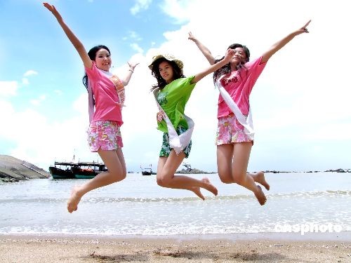 2009年6月17日,进入世界休闲小姐中国区总决赛的来自全国各地的20位佳丽,在广西钦州三娘湾海边进行外景拍摄。6月20日,世界休闲小姐中国区总决赛将在广西电视台1000平米演播厅进行,《时尚中国》栏目组全程录播。中新社发 骆文刚 摄