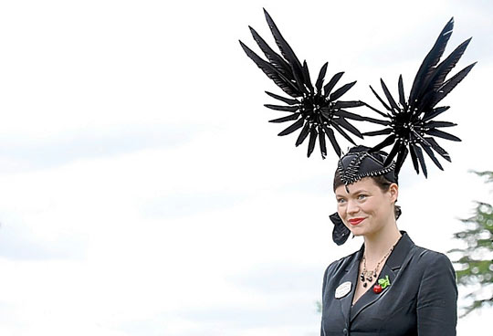 据英国媒体报道,英国皇家赛马会18日进入第三天,也就是英国人所称的“淑女日”,依照传统,这一天女士们都会带着造型奇特创意十足的帽子亮相,争奇斗艳吸引眼球。