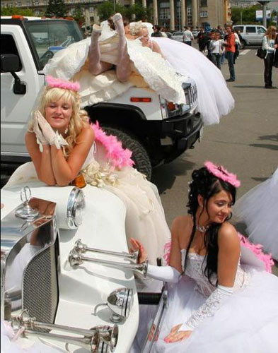 6月21日,在俄罗斯西伯利亚城市克拉诺亚尔斯克,已婚的女子重新穿上婚纱,参加一个名为“新娘游行”活动,重温结婚时的美妙瞬间。