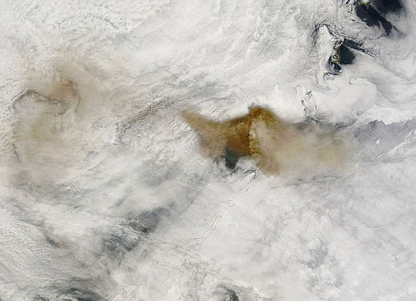 据英国媒体6月25日报道,国际空间站的航天员在太空拍到地球一座火山爆发的照片,照片中由褐色火山灰和白色水蒸气形成的巨大云柱直冲天空,十分壮观。