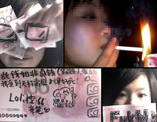 90后非主流女孩烧百元人民币点烟遭网友痛批