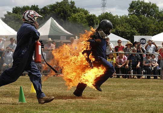 39岁的男护士Keith Malcolm以近259英尺的成绩打破了在身上点火之后跑得最远的世界纪录。