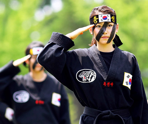 7月8日,韩国特种部队出动男女特种兵进行了跆拳道格斗术演练及特技表演。近日,朝核危机以来韩国三军部队频频进行军演。