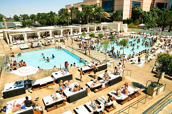 在美国赌城拉斯维加斯的威尼斯人赌场饭店,有一个独一无二的露天泳池,它没有幽静的花园,也没有海豚表演,在这里只允许成人入内,在泳池入口,有工作人员负责检查每个人的身份证,以防止未成年人进入。这里每个周末都会举行狂欢Party。