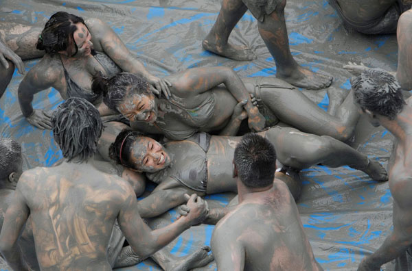 7月11日,韩国第12届保宁美容泥浆节泥巴大战在大川海滩举行。