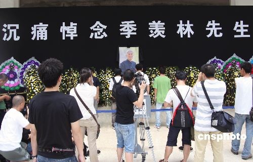 7月12日,北大师生和社会公众排队前来悼念国学大师季羡林先生。北京大学百年纪念讲堂南大厅季羡林先生灵堂当天开始接受季老生前友好、广大师生和社会公众的吊唁。7月11日上午,北京大学资深教授、国学大师季羡林先生在北京301医院辞世,享年98岁。中新社发 安微 摄