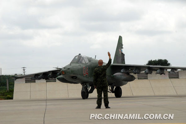 图为俄罗斯军队的苏25战机。(图片来源:中国军网 戴景涛 姜秀宾 王金龙 摄)