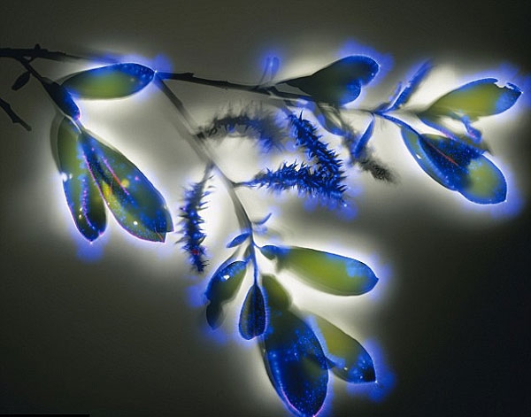 据英国媒体近日报道,美国摄影师伯特-布尔特曼花费10年心血拍摄了令人惊异的植物通电照片。这些照片是电流穿过金属板,而金属板顶部放置着植物,在这种条件下拍摄植物通电的情景。