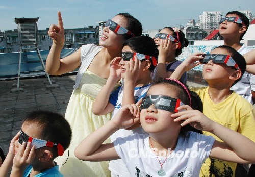 7月22日上午,500年一遇的罕见日全食将出现在中国境内。近日,中国各地掀起了一股天文观测热。图为7月20日上午,安徽省芜湖市镜湖区青少年科技活动中心邀请了近20名辖区内小天文爱好者,在科技辅导员的指导下模拟观测日全食,为7月22日的正式观测做准备。中新社发 吴安亚 摄