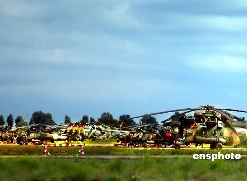 参加“和平使命2009”联合反恐军事演习的中国军队陆军航空兵部队,7月20日官兵们在认真检测即将参加演习的直升机群,以确保在演习中万无一失。这支部队在演习中担负着地面攻击配合、投送兵力、医疗救护等任务。这次演习,双方以陆军和空军为主,中方参演部队包括1个陆军战斗群和1个空军战斗群,俄方参演兵力包括1个陆军加强摩步营、1个空降突击连和部分空军兵力。中新社发 宋吉河 摄