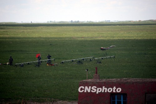 7月21日,参加“和平使命—2009”联合反恐军事演习的俄方参演部队进行分练,中方参演部队予以配合。在80分钟的分练中,进行了 “联合封控、立体突破、机动歼敌、纵深围剿”等内容达到了预期的效果。俄方加强步兵营、空降兵突击连和参演的俄空军各种战机参加了分练。 图为中方参演部队发射无人机。中新社发 张雷 摄