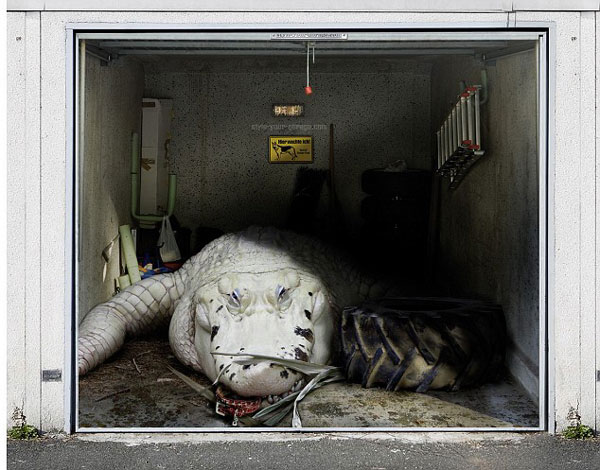 据英国媒体21日报道,德国一位艺术家在车库大门上创作的作品让人瞠目结舌,这些炫目的作品绝对达到了以假乱真的效果。如果有兴趣,他甚至可以按照你的意愿为你订做。