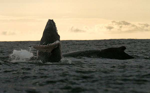 10.在哥伦比亚的太平洋海滨,一只座头鲸露出水面。每年6月到11月份,座头鲸从南极向赤道附近的哥伦比亚海岸进行“移民”,目的是产仔、觅食和休息。