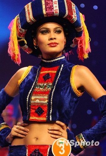 图为参加亚洲超模大赛选手展示中国少数民族服饰。中新社发 钱兴强 摄