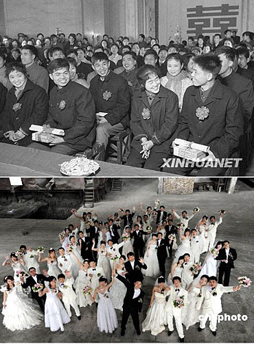 下图:2009年5月16日,在沈阳铸造博物馆举办了主题为“辉煌新起点,共建新家园”的集体婚礼,26对青年在父母和同事的见证下走入了婚姻殿堂。(图片来源:中新网 罗澜 摄)