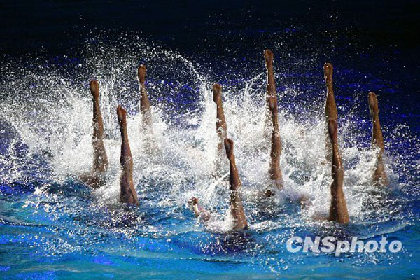 7月27日晚,2009年中俄青少年运动会在北京国家游泳中心“水立方”开幕。本次赛事为期5天,共将进行摔跤、射击、跳水、花样游泳、体操、武术等9个大项、62个小项的比赛。中国和俄罗斯代表团各派出88名青少年运动员参赛。中新社发 富田 摄