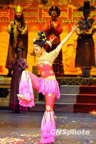 7月29日晚,作为国庆60周年献礼的优秀演出剧目,由中宣部和文化部主办,甘肃省歌舞剧院演出的经典舞剧《丝路花雨》,在国家大剧院上演。中新社发 潘旭临 摄
