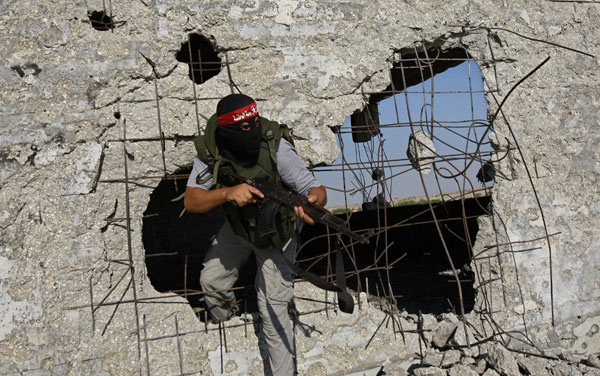 7月30日,解放巴勒斯坦民主阵线的武装人员在加沙地带南部的拉法举行对媒体公开的训练活动。