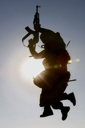 7月30日,解放巴勒斯坦民主阵线的武装人员在加沙地带南部的拉法举行对媒体公开的训练活动。