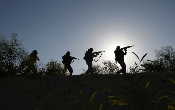 7月30日,解放巴勒斯坦民主阵线的武装人员在加沙地带南部的拉法举行对媒体公开的训练活动。