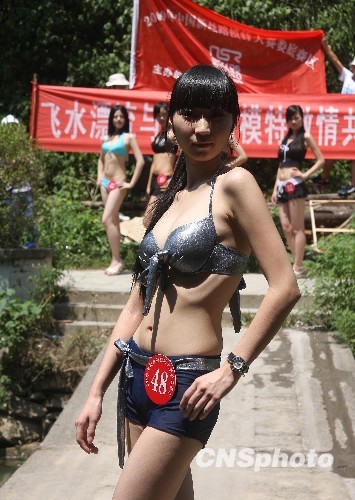 7月23日,“2009中国新丝路模特大赛”娄底赛区复赛在湖南省一国家森林公园飞水崖景区举行。中新社发 郭国权 摄