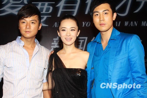 8月3日,台湾导演杨玄执导,由出演《奋斗》大热的朱雨辰和霍思燕、狄龙之子谭俊彦主演的《爱要有你才完美》在北京举行发布会。该片是一部讲述北漂族在娱乐圈中打拼的青春励志电视剧。图为朱雨辰、霍思燕、谭俊彦在发布会上。中新社发 李学仕 摄