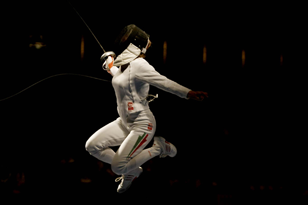 竞技体育本身充满美,静下心来欣赏,能让观者得到精神的愉悦。赛场上的运动员不仅仅是体育精神的传播者,同时也是艺术美的演绎者,他们的健康与活力成为人们最有欣赏价值的一面。感谢摄影师们用镜头记录下了一个个精彩的瞬间,将人体美、健康美、生命美、运动美成为定格。图为在北京奥运会的击剑场上,运动员的身姿就像一名舞者。