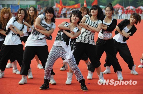 8月8日,2009年深圳市全民健身日活动启动仪式在深圳体育中心广场隆重举行。当天的深圳体育中心广场成为群众体育的大舞台。大型群体表演、专业团队表演及趣味体育活动让市民们大饱眼福。威风锣鼓、木兰扇、柔力球、轮滑、极限运动、街舞、航模等11项目的表演精彩纷呈。还有趣味篮球活动,以及免费为市民测定形态指标、机能指标、素质指标、亚健康测试等。另外,深圳市庆祝“全民健身日”图片展同时开展,内容包括北京奥运会一周年回顾、深圳市全民健身活动的回顾、深圳大运会专题、深圳体育30年成就展等内容。 中新社发 吴峻 摄