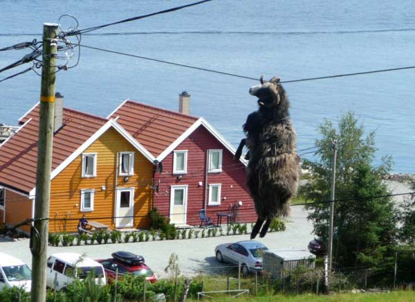 据英国媒体9日报道,挪威一头绵羊不知何故犄角缠在了一根电线上,并冒失的从小山上的牧场上滑了下来, 一不小心过了一把“空中缆车”的瘾。