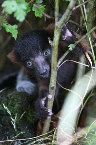 据英国媒体11日报道,苏格兰布莱尔德拉蒙德野生动物园近日诞生了一只可爱的红领狐猴宝宝,当游客向它扔去一个梨时,好奇的狐猴宝宝对梨非常着迷,不停地舔。 小狐猴舔梨的可爱表情吸引许多游客驻足观看。