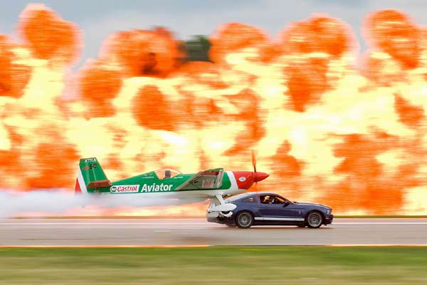 美国“飞来者大会”(AirVenture)是全美最成大的航空爱好者集会,这是本次集会的特技飞行表演。