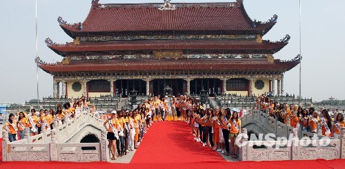 图为正在河南参加2009国际旅游小姐冠军总决赛的各国佳丽,来到驻马店南海禅寺参观游览。中新社发 钱兴强 摄