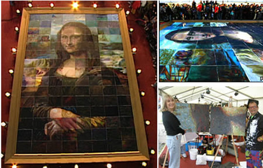 2005年8月25日,爱丁堡艺术节,共有120名艺术家大师在苏格兰国家画廊共同创作了这幅9米×6米的蒙娜丽莎油画。