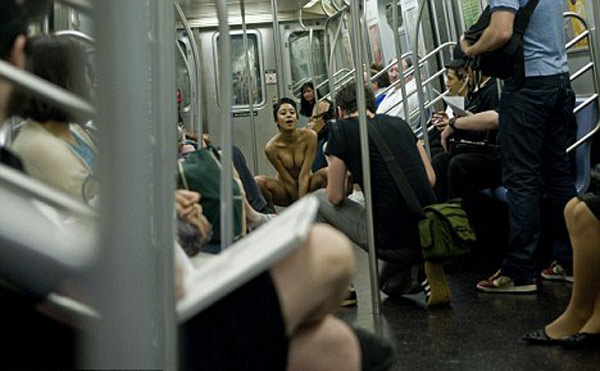 据英国媒体22日报道,美国摄影师扎克-海曼在纽约一辆地铁中仅花了30秒钟,就为一名女演员拍摄了一组10张照片。在公共场合“速拍”裸模是他惯用的手法。