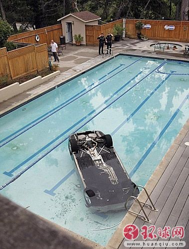 2009年5月,美国加利福尼亚州一女司机在停车时将车倒入一个距路面15英寸高的私家游泳池,幸无人员受伤。