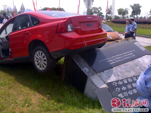 2008年5月,在南昌市红谷滩新区的南昌市会展中心院内,一辆崭新的沃尔沃牌轿车因女司机操作不慎,瞬间冲上一块路碑,女司机当场吓晕车内,后被人抬出并慢慢恢复清醒。