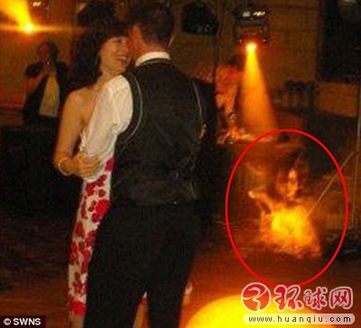 英国一名男孩2008年8月给一对新人拍摄婚礼照,几天后当他在电脑上浏览照片时不禁大惊失色——照片上竟然有一个神秘“鬼影”。12岁的乔丹参加一个婚时用数码相机给新娘新郎拍了一组照片。回家后其中一张照片引起了他的注意:照片的右下角距离新郎几厘米的地方有一个模糊影像,可以分辨出这是一名妇女的头以及上半身。丹的母亲安妮不相信世界上有鬼存在,但她无法给出合理的解释。