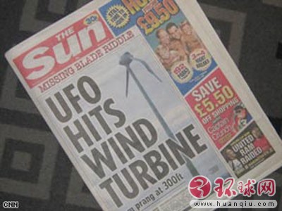 据CNN报道,2009年1月8日一个不明飞行物袭击了英国林肯郡的一个小村庄,一个风能发电机的扇叶被飞行物击出了20米远。“一道奇怪的闪电,神秘的发光体,数十个目击者,一个被击飞了的扇叶,外星人袭击了农场,”英国小报《太阳报》在头版头条以这样的一个标题,报道了此次事件。