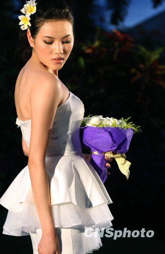 图为模特展示09新款婚纱系列作品。中新社发 钱兴强 摄