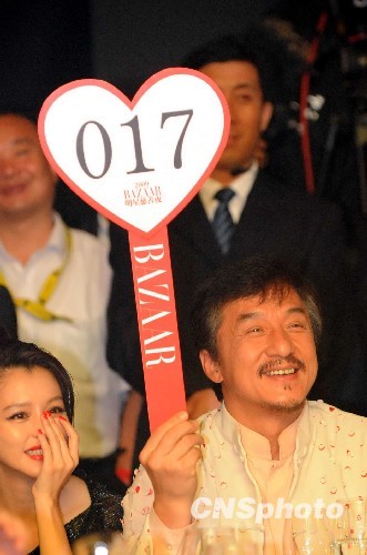 图为成龙高举号牌竞拍。中新社发 曹继 摄
