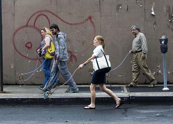 超过2000人同时于布鲁克林街上遛狗,并且遛的都是“看不见的隐形狗”,诡异情境使不知情的路人看得目瞪口呆。原来这是知名网站Improv Everywhere 举办的街头恶搞活动,他们号召一群演技逼真又敢玩的“疯子”,拿着1970年发明的“隐形狗玩具”,到街头演出。现在就来看看这场特别的“隐形狗”恶搞造势活动。