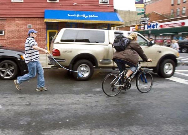 有只“隐形狗”突然不受控制,冲出去追一辆脚踏车。