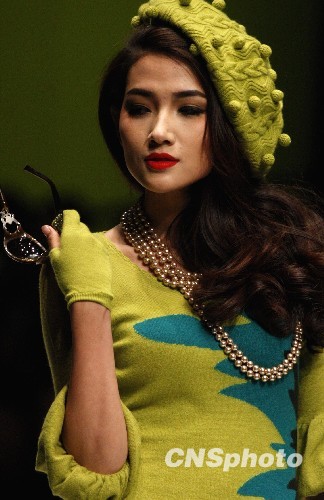 11月3日,在北京举行的中国国际时装周上演米皇羊绒“奢美传奇”主题米皇祁刚高级羊绒时装发布会,设计上,高级成衣前卫设计理念和设计手法在羊绒面料上首次应用,高级成衣的层次感设计手法生动展现,色彩斑斓间让人恍惚回到了旧上海的奢华年代。图为模特展示祁刚高级羊绒时装发布会作品。中新社发 钱兴强 摄