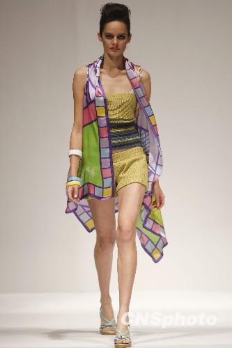 图为模特展示嵊州中国真丝产品2010春夏流行趋势时装设计作品。中新社发 钱兴强 摄
