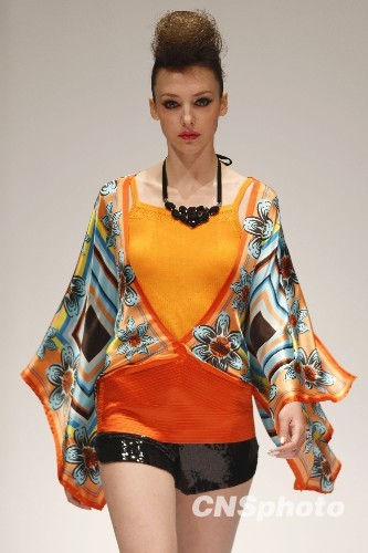 图为模特展示嵊州中国真丝产品2010春夏流行趋势时装设计作品。中新社发 盛佳鹏 摄