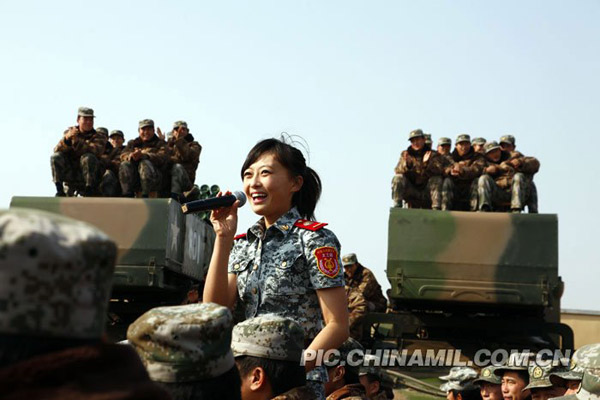 秋高气爽好练兵,训练场上歌声飞。今天,济南军区某装甲师战士业余文艺演出队为驻训官兵献上了一台精彩的节目。