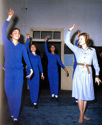 1975年,美国总统杰拉尔德·福特访问中国。图为福特总统的夫人学跳中国舞 。图片来源:新华网