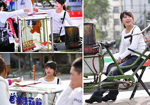 “糖葫芦西施”——康晓菡:她有多红? 曾是西安交大BBS每日必谈的话题,还时不时地冲上十大热点话题。为什么红?“因为她青春、阳光,身上有种与平时所见小贩不同的本色之美”。一个青春、靓丽、时尚的女孩子,在大学校园旁卖起冰糖葫芦。不足一年,这个叫康晓菡的女孩迅速走红西安交大校园,被男生们冠名为“糖葫芦西施”。